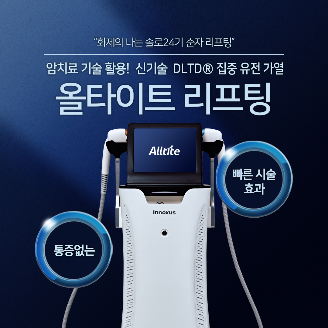 처진 얼굴 때문에 고민이라면? 단 1회만으로 처진 얼굴을 탱탱하게 만들어주는 리프팅계의 신세계 '올타이트' 리프팅을 경험해보세요!
